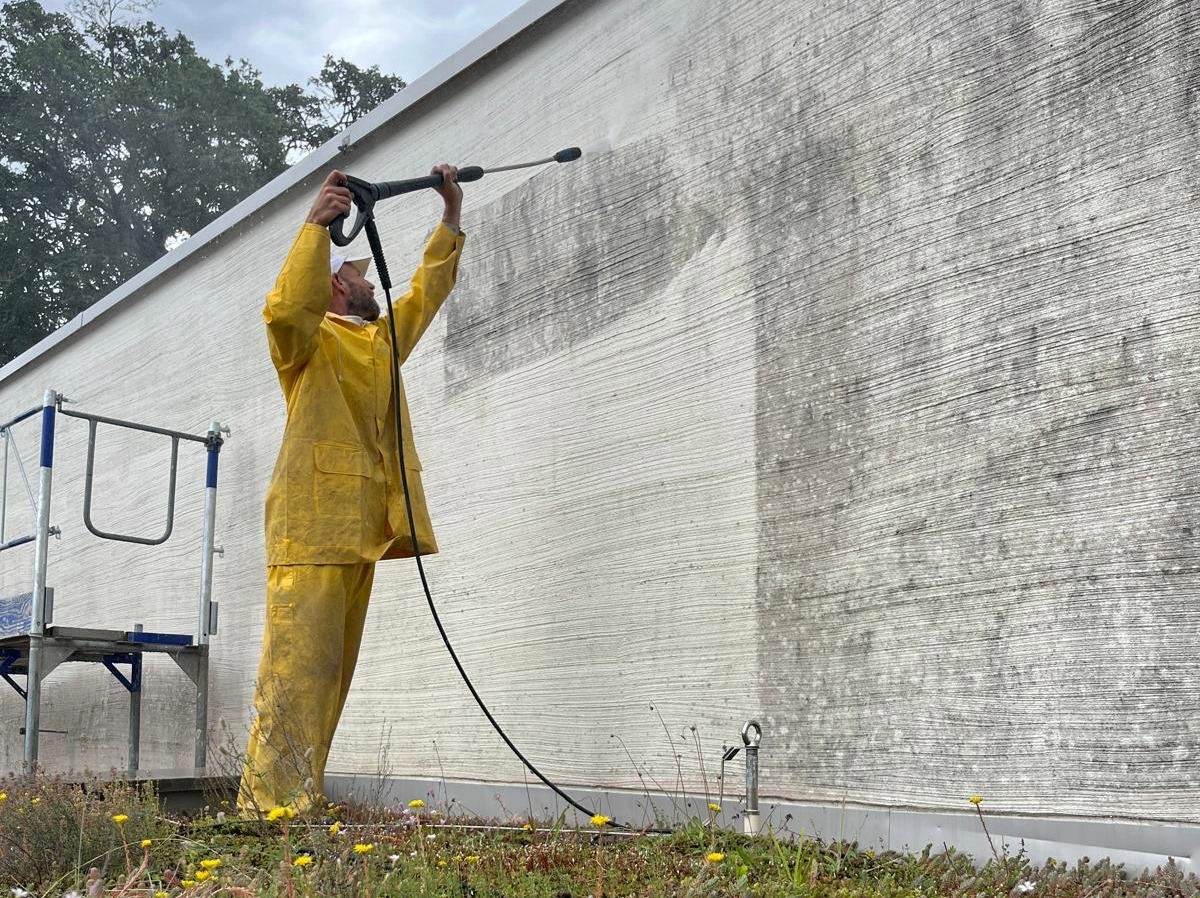 Unsere Fassadenreinigung entfernt effektiv Algen und Moos von Ihrer Fassade.